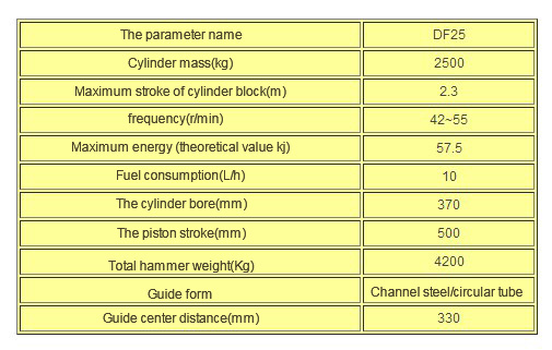 3. This model is designed and developed by our company during the development of the guide rod diesel piling hammer to medium and large tonnage in China. The technical parameters of the first product in China are superior to the relevant technical standards.
